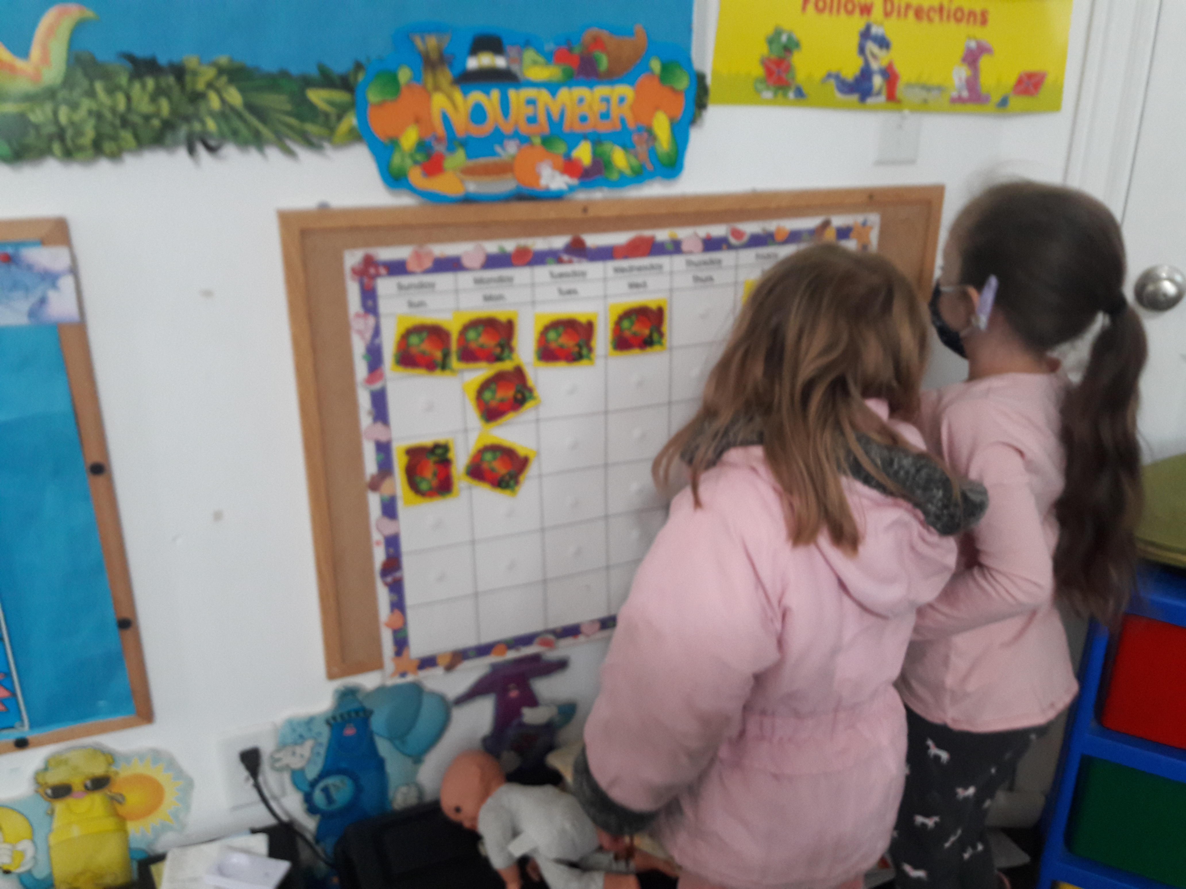 Here are other highlights of November (yes, I’m a month behind, hopefully I’ll get caught up over the Christmas break). The last picture shows how I am doing calendar this year. I set out that day’s date somewhere in the room, and as they find it, they put it on the calendar. Then at circle time we see what day we are on.
