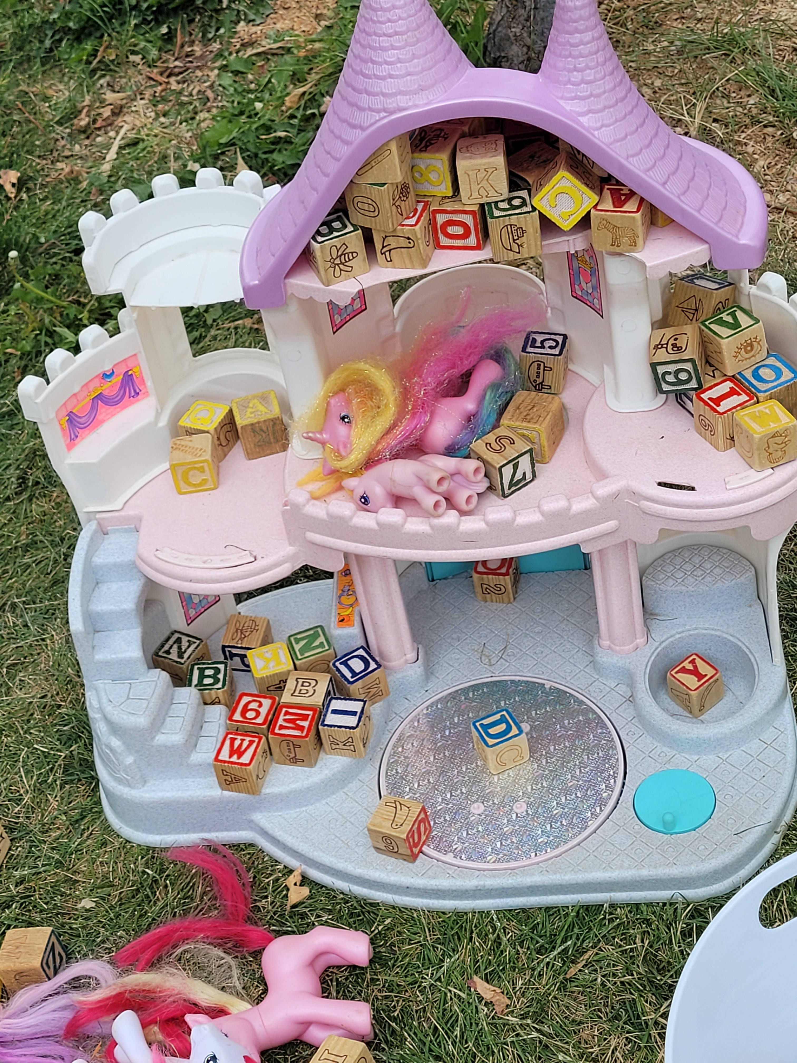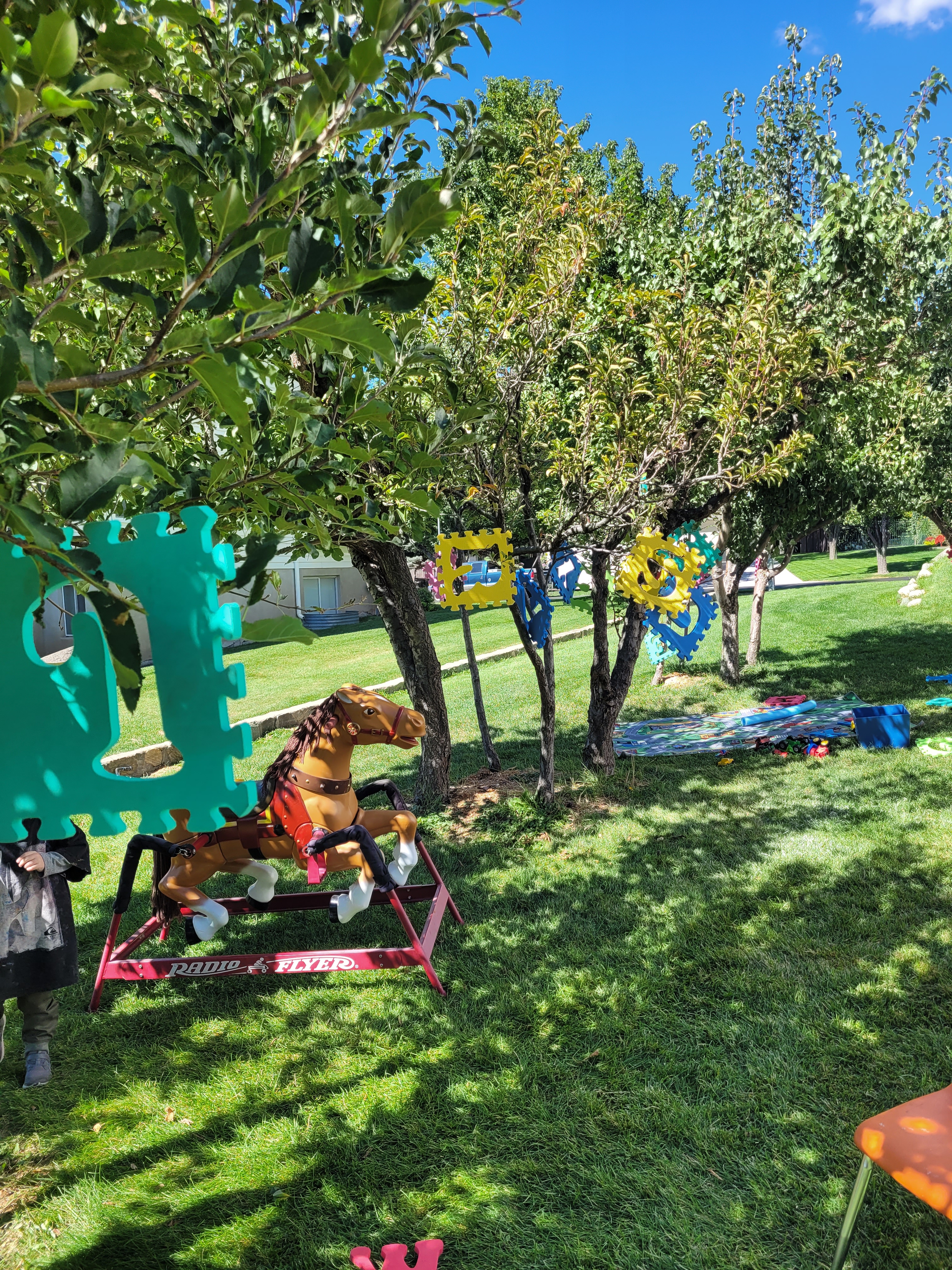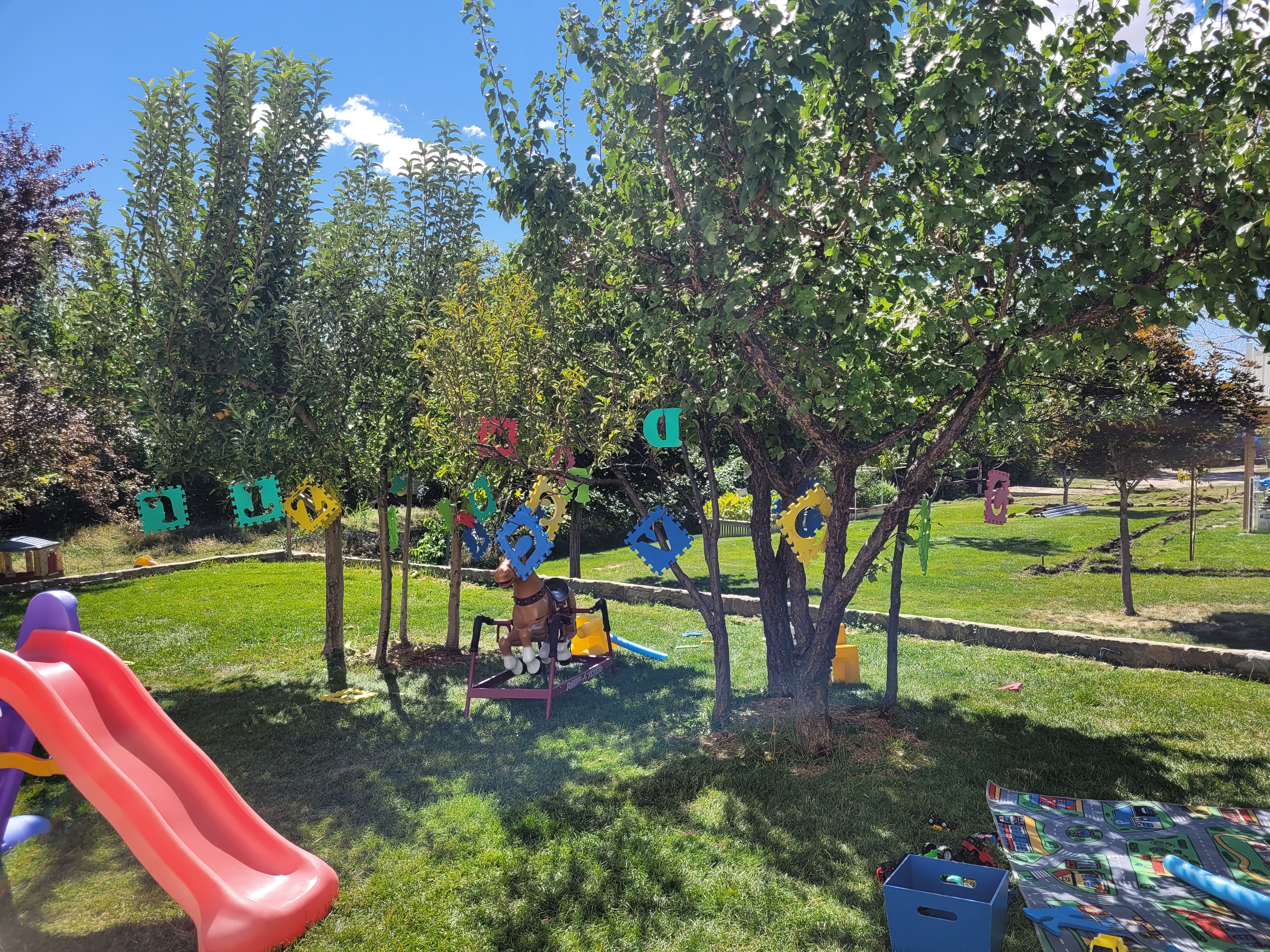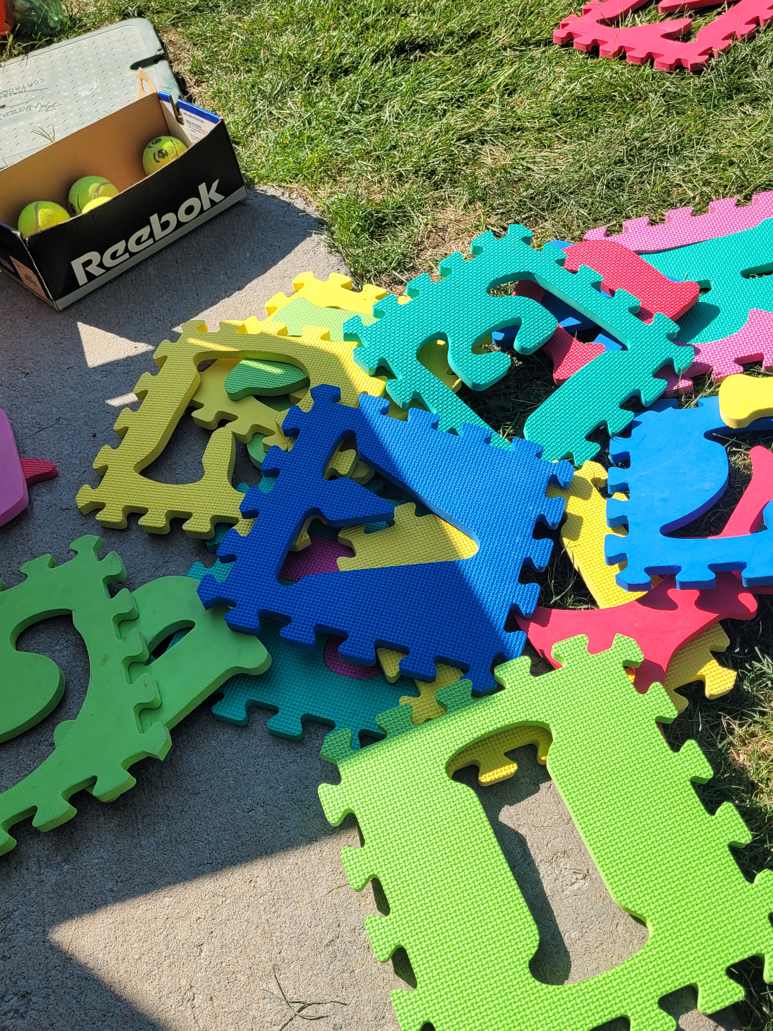 The fist things are these cut up pool noodles I’ve had for years. My intent was to let the children use them as swords since they are safer then sticks. But for some reason, I never got around to setting them out. And by some reason, I mean that I couldn’t bring myself to allow that kind of play, so they sat in my closet until now. Of course the majority of the use is fighting, but there are a few things that surprised me. They were used to make a campfire. They were used to measure the slide. I can’t wait to see what other ideas will come.