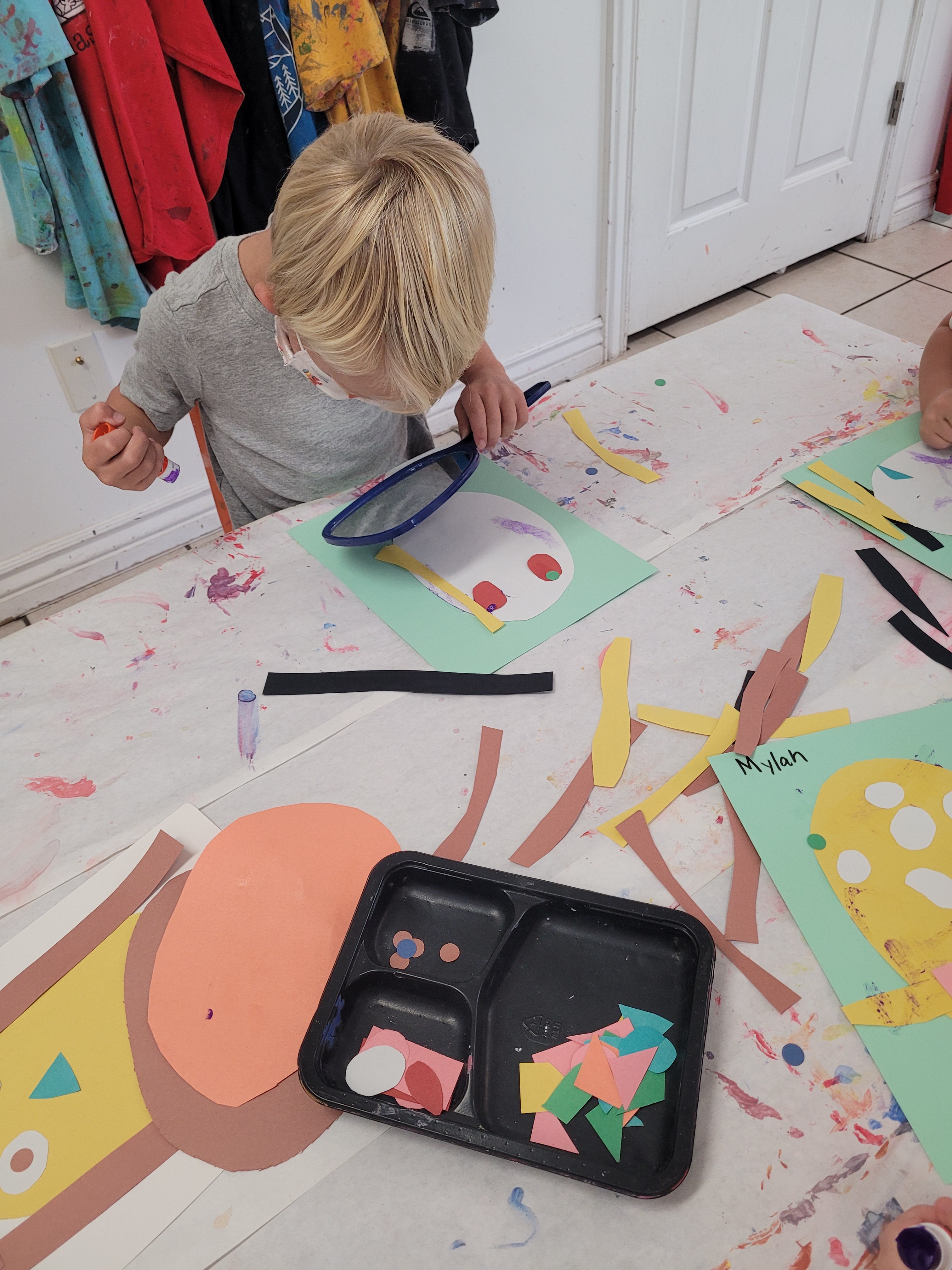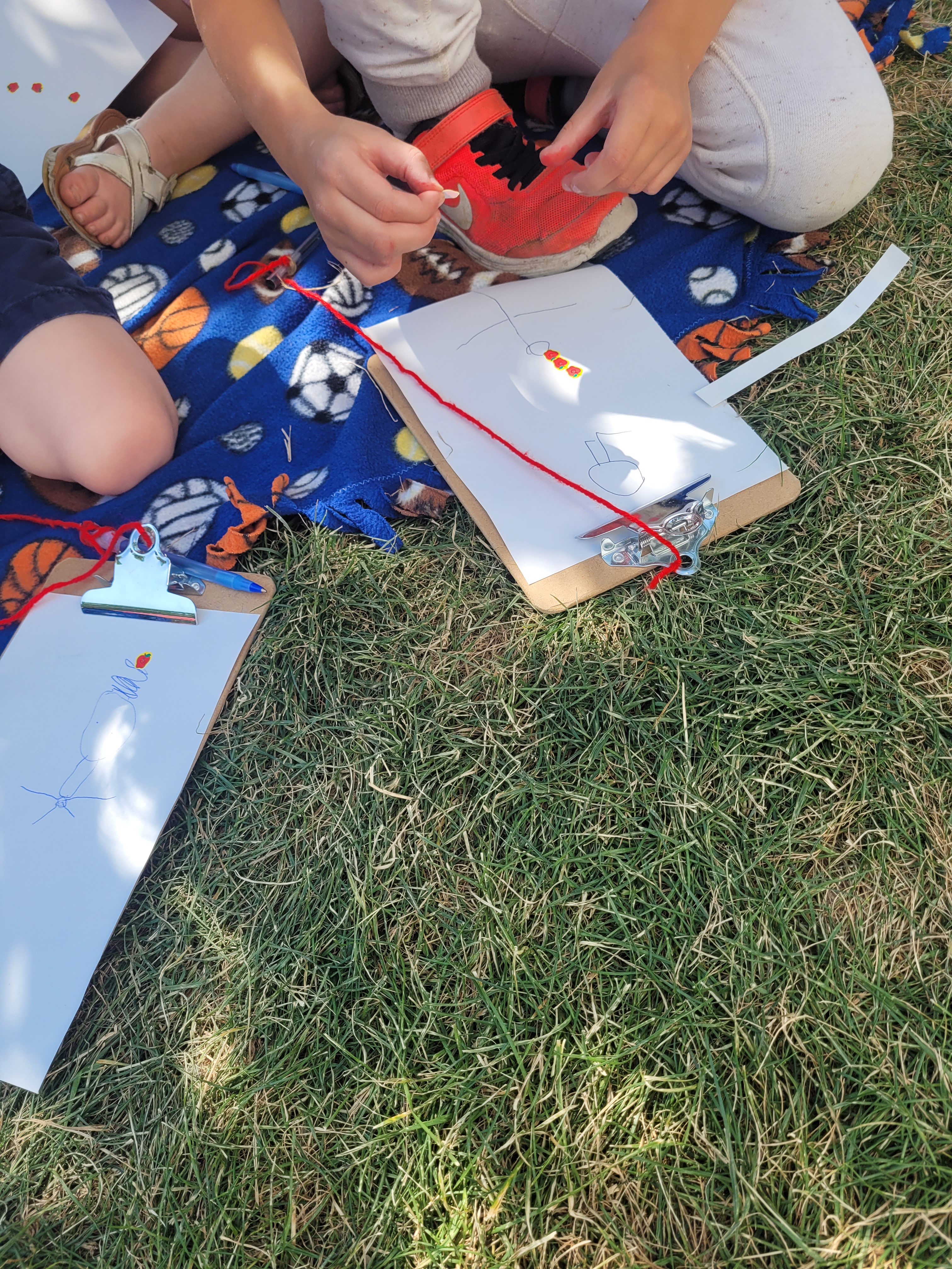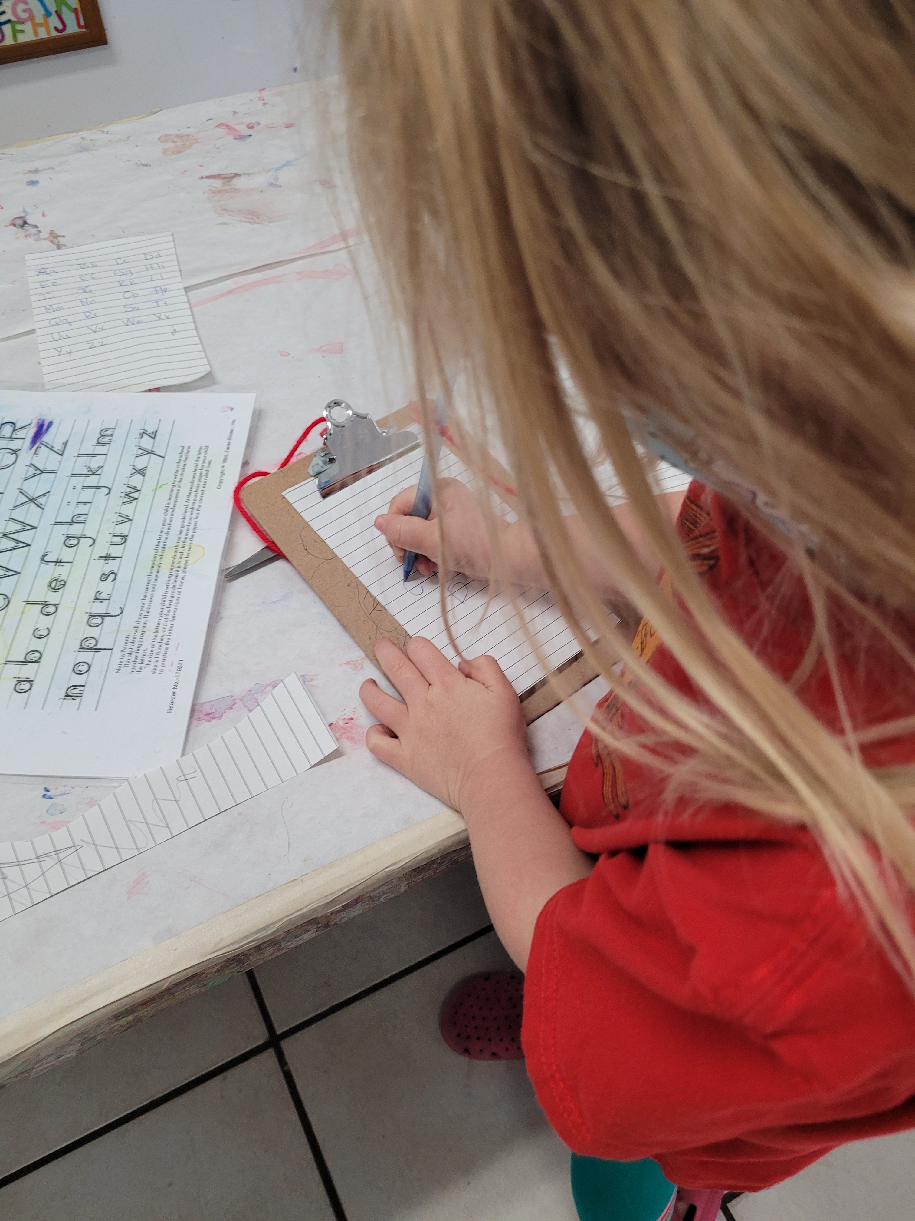 And of course, lots of writing. A fun new game, that two little girls came up with, is writing letters, cutting them out and hiding them for friends to find. I also made sure that the clipboards are always available, with plenty of paper on them.