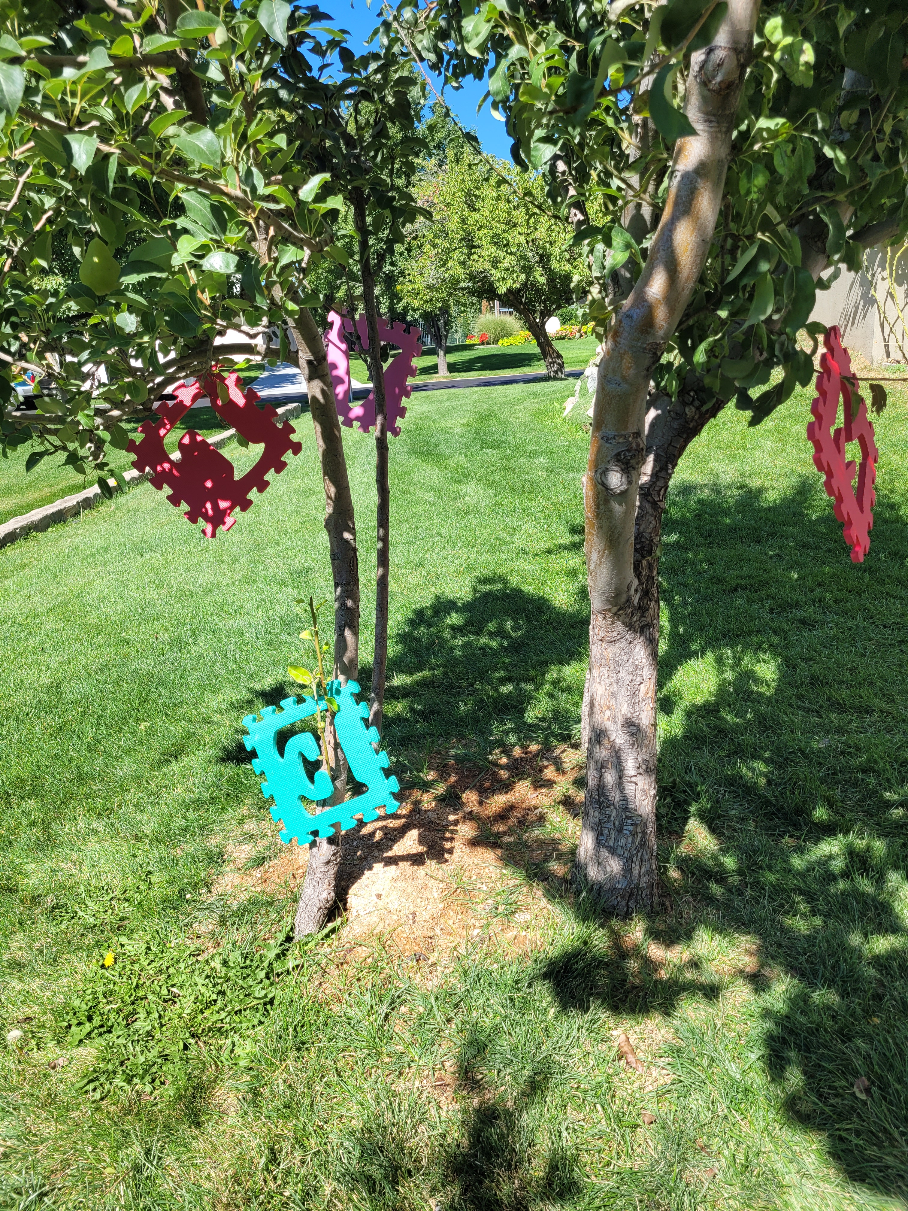 I have set these alphabet foam letters out before, but not often because I didn’t want to deal with the mess. I knew the first thing would be for all the letters to be taken out. And it was. But then, other uses happened. The letters were used to spell names and put into rows. And my most favorite, they were used to decorate the trees with a rainbow alphabet. I’m still putting the letters back in everyday, but that’s okay because they are being used in just the “right” way.