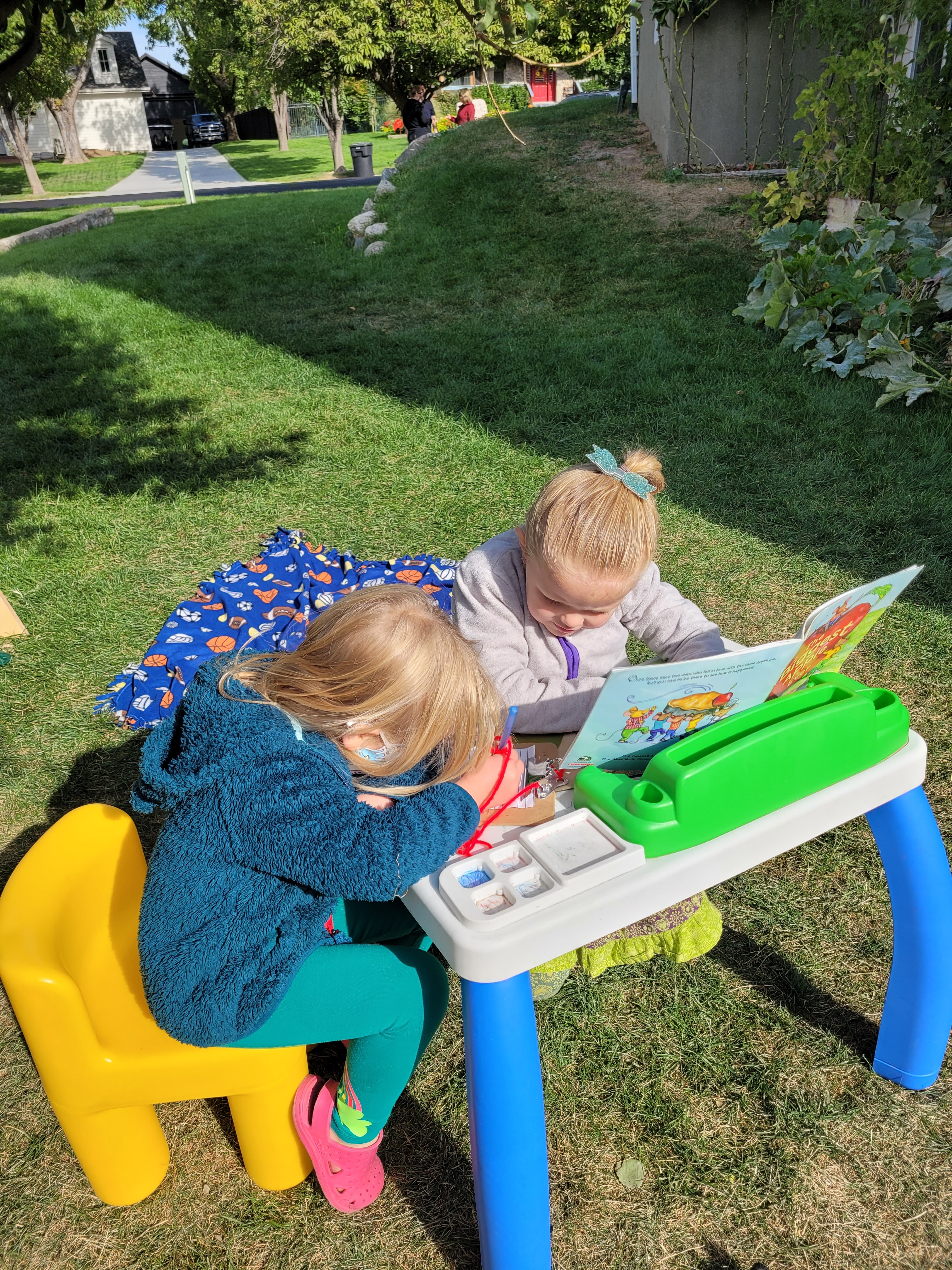 Well, here we are, at the start of another new year. I always look forward to this time. It’s great to see returning friends and to meet new ones. As with last year, we are planning on being outside as long as possible. We almost made it through September. I think there was one morning that was too chilly to start outside, but we were able to get outside eventually. This year, as Miss Heidi and are were setting up, I noticed a few toys/items that I had stuck away to be used for just the “right” thing. The problem was, the “right” thing never came around. So this year, I just decided to stick them all out and let the students decided what to do with them. The results were amazing, as they always are when I surrender the control of the learning to the students. Here are some highlights.