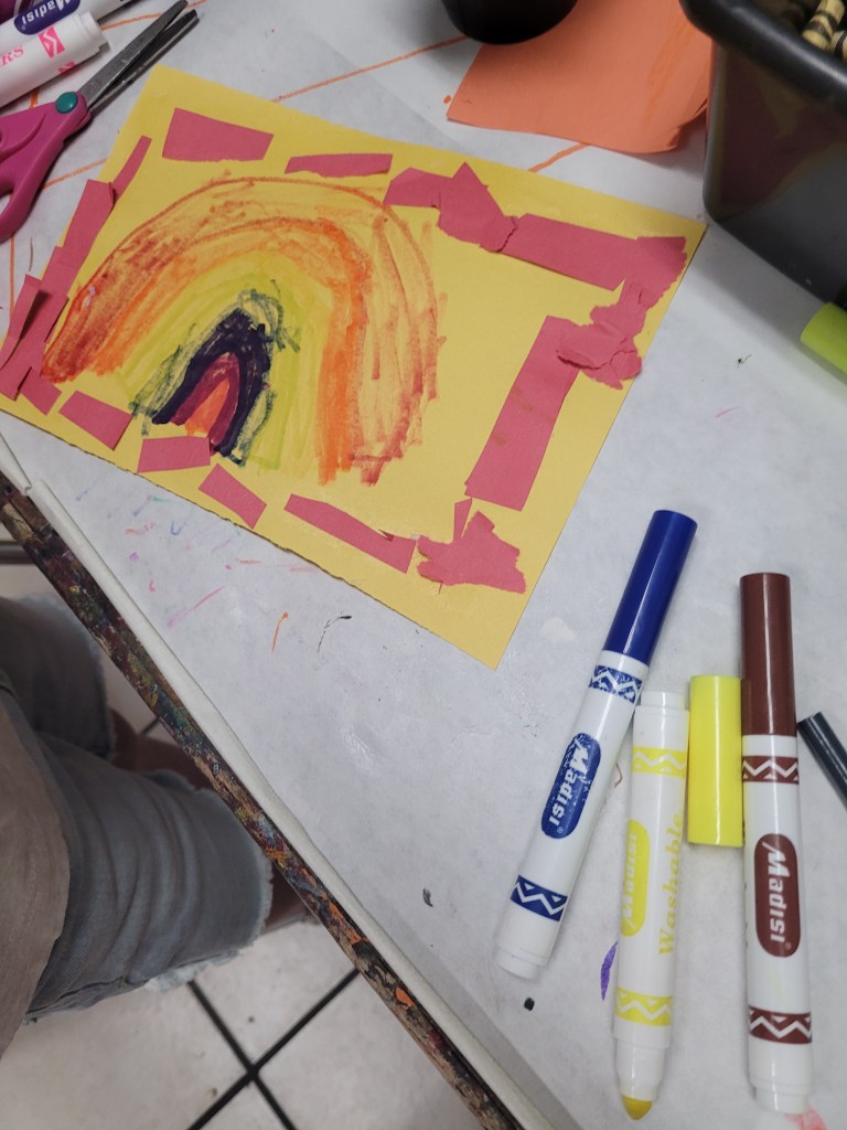 I always look forward to a new school year with excitement and a little trepidation. I will miss the students that moved on and hope the new students will enjoy our time together. And just like these new students, I feel a little nervous, not knowing what to expect with this new class. Since I am trying to leave my adult agenda at the door, I honestly don’t know what to expect for a new year until I meet the students and we spend some time together. So these first few weeks, or even the first month, will be spent building relationships, which will continue to develop throughout the year. And I’m happy to report we are off to a great start! I can tell this will be the best class yet! I say this every year, but it’s true. I feel like I get the best students and families! I didn’t get many pictures of the first couple of weeks. I was too busy playing with the kids, but we spent the time getting to know each other and the preschool. The art this first weeks were all open-ended, with the exception of the first initial sticker paper, but even that definitely got individualized as you can see in the pictures. So here’s to another great year!